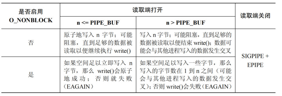 &#x20;向一个管道或 FIFO 写入 n 字节的语义如下：