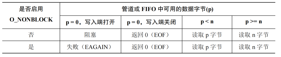 &#x20;从一个包含 p 字节的管道或 FIFO 中读取 n 字节的语义如下：
